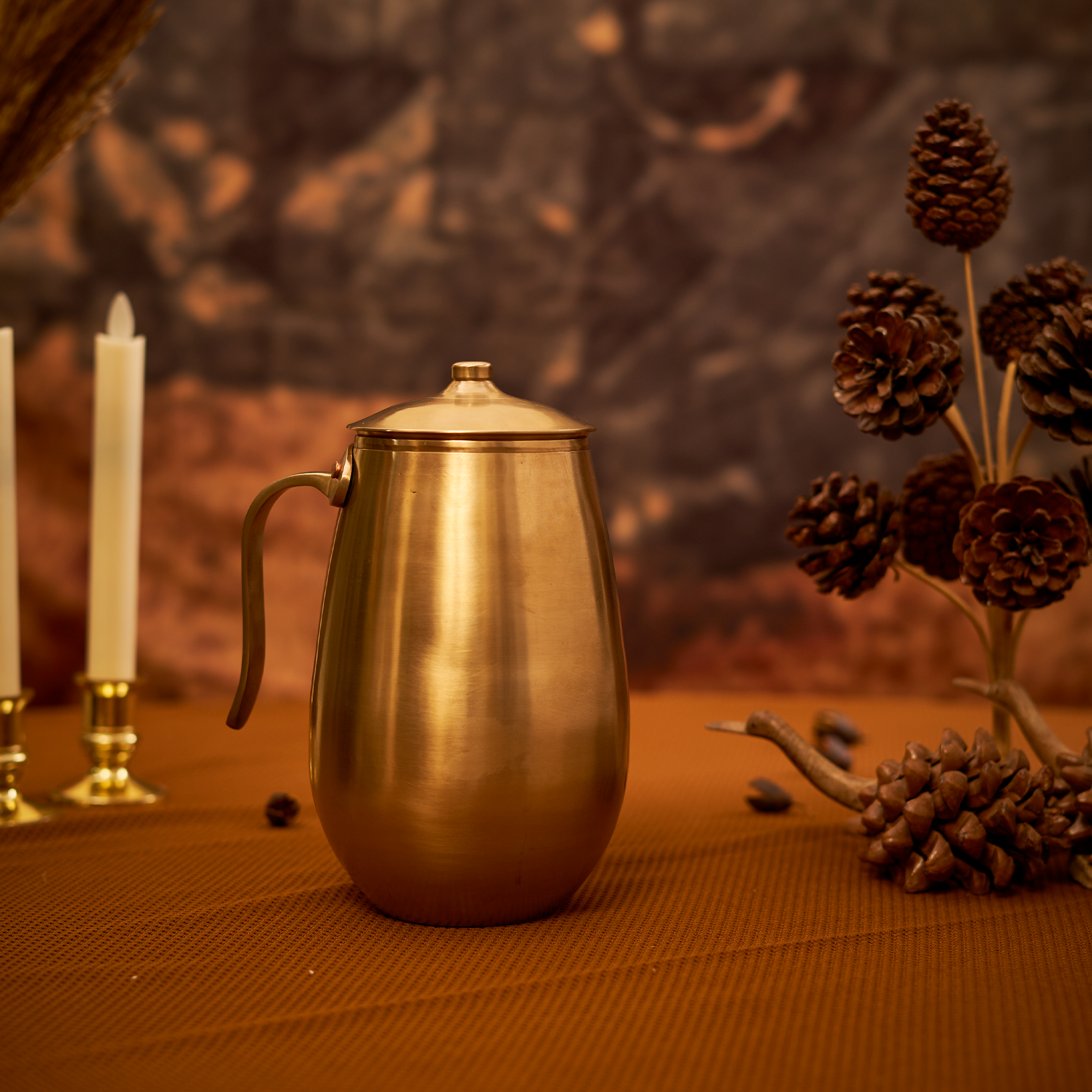 Bronze Jug - Damru (Small) with Lid | 850ml | Diameter 3.25" | Weight 980gm | Height 5.60"