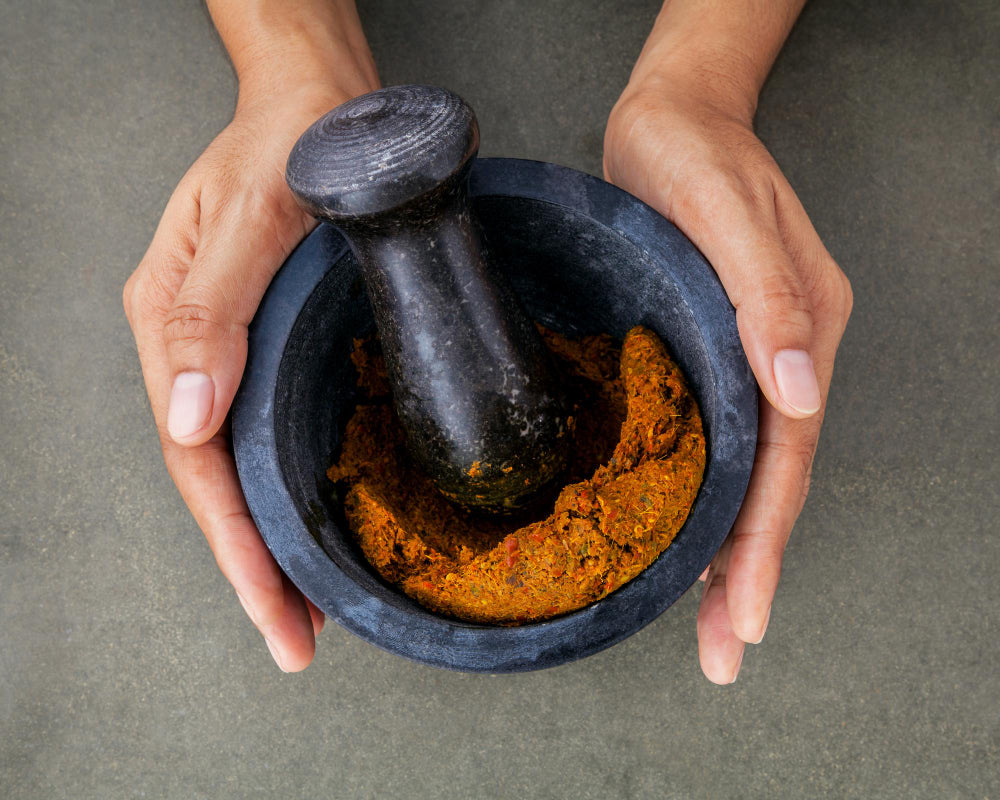 Ingredients: Dry Coriander, Hand Pounded Black Rock Salt (Sanchal), Hand Pounded Rock Salt, Red Chilli, Mint Leaves, Carom Seeds, Hand Pounded Asafoetida